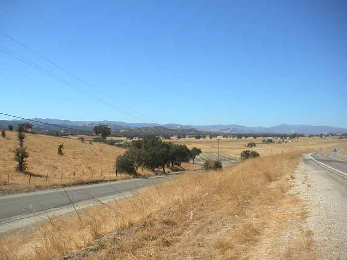 L12 - Getzelmann Place - The Lockwood Valley was once known as Starvation Flats because of the lack of water. Grandpa Absalom Boone Ford used to raise peaches and sell them to residents of the valley. Lucille Getzelmann moved into the Ray & Myrtle home a few months after Wayne was born, and lived there for a year or two while she was a teacher at the Hesperia School. Even well into her 90's she would drive into Paso to do her own shopping. At her funeral, they started late on purpose in honor of Lucille, who was ALWAYS late for church. (Actually, this photo is not taken of or from the Getzelman place; it's off beyond the left margin of the image.) (35.906124, -121.0137504)